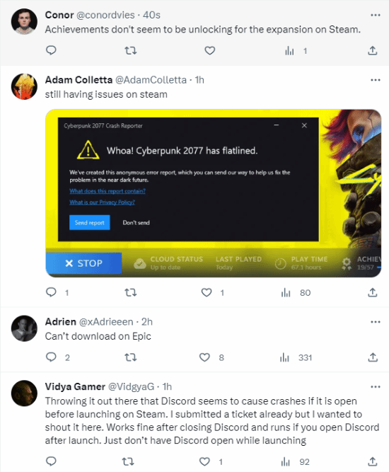 不过评论区有些玩家表示,自己仍然遇到了一些问题,有Steam资料片解锁不了成就,运行报错等。官方也在积极解决这些问题,还有问题的玩家可以等待CDPR更新修复。