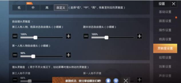 指的是开镜后的灵敏度,灵敏度越大,镜头移动速度越快。灵敏度越小,镜头越稳定。