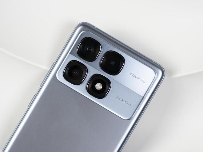 Redmi K70至尊版后壳上半部分有矩形镜头模组,三颗镜头以及一个散光灯整齐排列,视觉上十分规整。此外,Redmi K70至尊版的矩形镜头模组边缘还进行了类似后壳的弧度收边,完全不会有割手感。