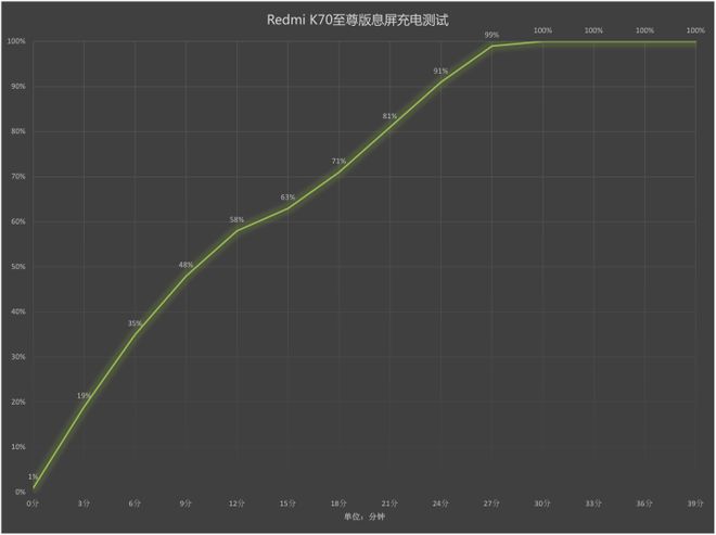 充电方面,Redmi K70至尊版支持120W快充。PChome实测,Redmi K70至尊版充电12分钟可以充入58%的电量,半小时即可完全充满,真正做到了分钟级充电,日常使用时,早上刷个牙的时间,就能快速补能。