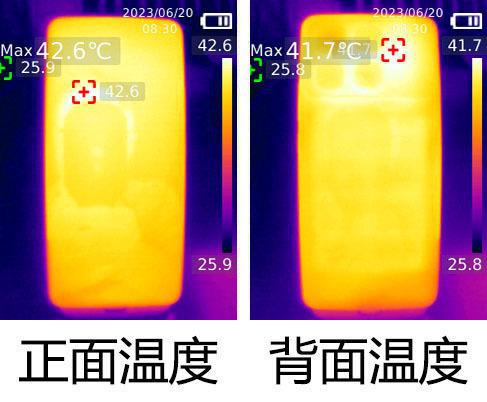 高分辨率渲染确实会造成功耗的提升,不过5.25W的功率也完全可以接受,毕竟画质的提升是实打实的。而且温度也表现极佳,正面41.9℃,背面41.6℃。
