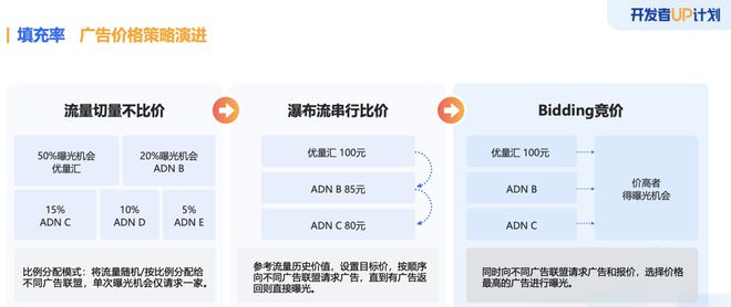 某混合变现的游戏开发团队表示,他们过去习惯接入按比例分配或瀑布流比价模式来返回广告,不过这样往往会使广告点位经常出现没有广告返回,导致浪费曝光机会,从而无法获得最优出价、影响广告收益。并且在应用瀑布流竞价模式的时候,他们还需要花费高昂的人力成本,对广告联盟优先级进行实时调整和优化。