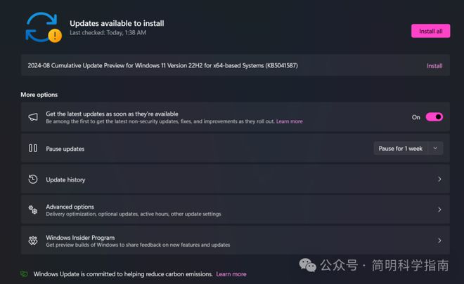 因为该补丁属于可选更新,所以Windows 11不会自动更新,你必须手动寻找并安装。