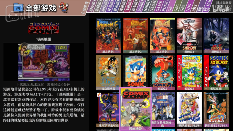 最后,光有性能和软件也不够,PC的性能足够强大,模拟软件也早已成熟,但也没多少人愿意在电脑上打模拟老游戏,这涉及到一个周边支持度的问题。掌机目前的模拟生态,是有种“收藏”的文化气息在里面的。因为有很多爱好者团体会针对热门机型,定制美观的整合前端,封面、简介、遮罩,滤镜等等,赋予了安卓掌机一些“数字收藏馆”的价值,使其变成了一种类似数码潮玩的东西。装上天马G、大水杯等美观易用的整合前端后,整体UI可以说赏心悦目,远非一个光秃秃的模拟器图标可比。即便不玩,光是浏览收藏的无数机种和游戏也非常养眼,这便是软硬件生态协同带来的加成。