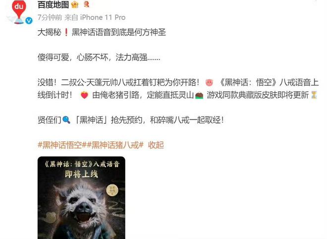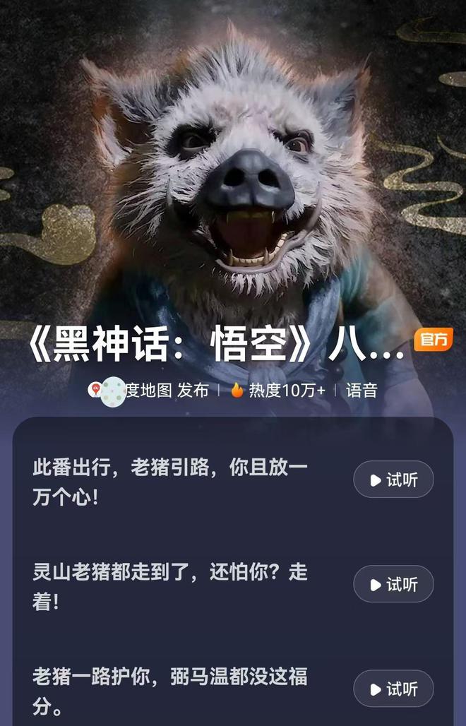 虽然现在《黑神话:悟空》的热度有所下滑,但玩家对于这款游戏的讨论仍不绝于耳,比如说游戏CG剧情、天命人打法的流派之分以及《黑神话:悟空》破圈等话题,那么《黑神话:悟空》有多火出圈?某度地图都跑来“蹭热度”,八戒语言包即将上线。