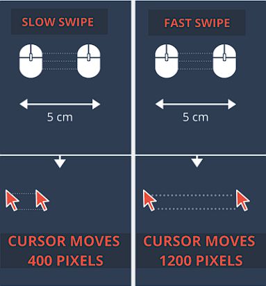 鼠标加速功能启用时,当你快速移动同样的5cm时,可能实际移动的像素有几倍差距