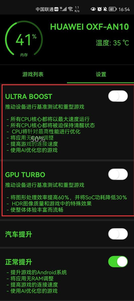 在【设置】里还有一些【更大力度】的加速选项,如果正常提升后,玩游戏仍然卡顿,就可以开启这个选项。