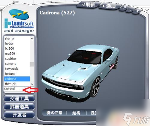 9.查看MOD:在左侧输入车辆MOD的文件名可定位到车辆,就可以查看安装的MOD的状态
