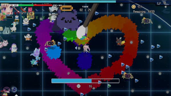 《HoloCure》的玩法类似于《吸血鬼幸存者》和《魔法生存》,玩家通过操控Hololive成员施展各种不同的攻击来击败被洗脑的粉丝们变成邪恶化的吉祥物。通过提升角色等级,解锁更多不同类型的武器和道具,玩家可以尝试打造最强大的角色,并击败无尽的敌人。