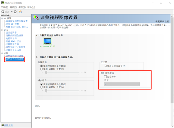 使用耕升 GeForce RTX 40系列GPU打开NVIDIA控制面板,在左侧一栏“调整视频图像设置”还可以打开“RTX 视频增强”功能。RTX VSR可以通过利用AI与GeForce RTX Tensor Core消除视频压缩的块效应以提高视频分辨率,从而改善通过Chrome和Edge浏览器观看的任何视频质量和提升视频的锐度以及清晰度。