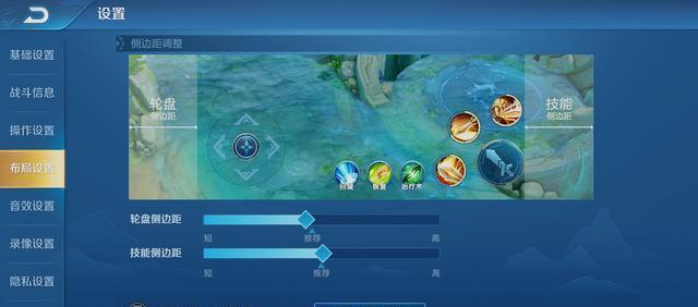 最后就是游戏按键的布局设置,这一点是针对每一名玩家的个人习惯和手机所决定的,轮盘侧边距和技能侧边距可以调整按键距离手机屏幕边缘的位置,每个人大拇指的长度是不一样的,所以每一名玩家都有自己个人的按键布局设置,选择一个合适的距离能够让自己的操作变得更为简单。