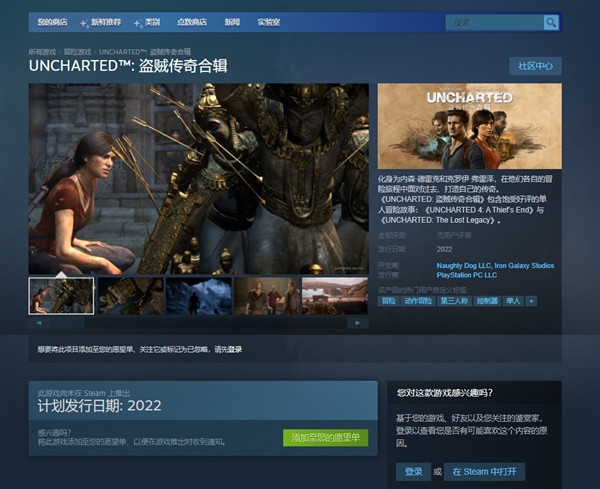《战神》登录PC平台之前,《地平线:零之曙光》、《往日不再》就已经登录PC,显然,前有古人,后也会有来者,《神秘海域》这个IP也即将登录PC。