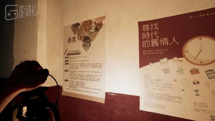 游戏里故事发生的主舞台——文华大学大忍馆,算是这几年恐怖游戏里细节最丰富和真实的场景之一。比如在学校走廊里,你能看到不少毫无违和感,充斥着“大学生风格”的社团活动海报和公益广告:
