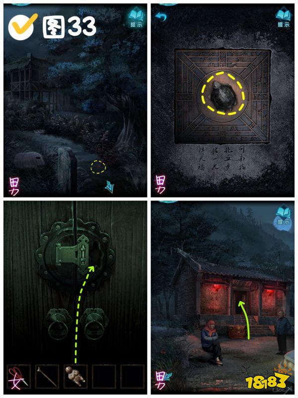 【蓝申墨卿】右转来到村口,进入祠堂,需破解风水布局王娇彤才可进入。(图33)