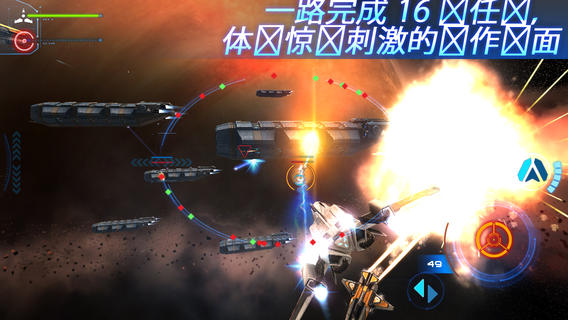 众多的行星系、星云和小行星带等着你来探险。细节逼线D 游戏画面,引人入胜而又美丽神秘的手绘太空场景,壮观的游戏特效,经过渲染的光晕、光线、太阳耀斑和反射。