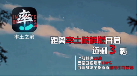 这类素材主要是新产品会针对相关内容进行买量投放,用倒计时来刺激玩家“快下载”的情绪,但也有老产品会应用,例如《率土之滨》的买量在“率土”后面加上了“破解版”,实则宣传的还是《率土之滨》,“破解版”一词主要强调了产品游戏资源丰厚的亮点。