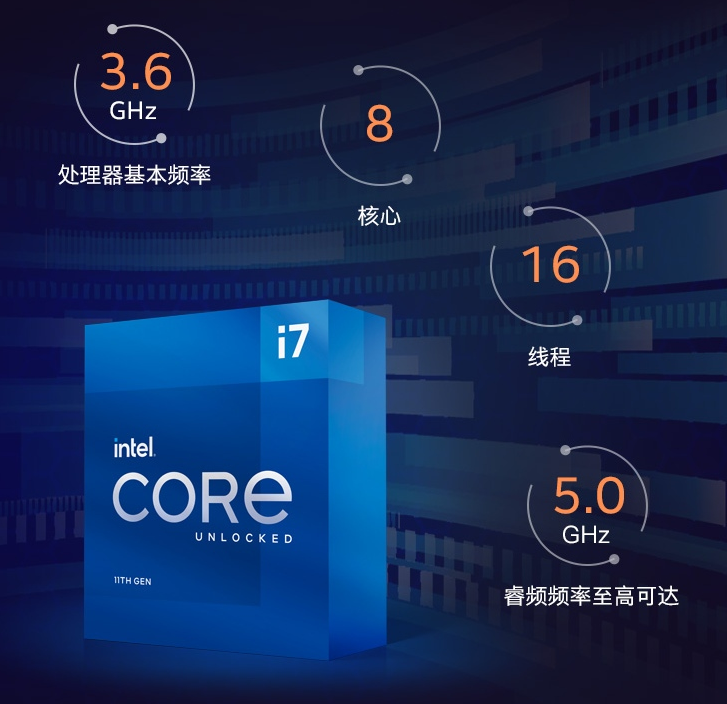 处理器方面可以选Intel Core i7-11700K,它是十一代酷睿家族的重要成员,也采用的Rocket Lake架构和Cypress Cove微架构,拥有8核心16线W,拥有20条PCIe 4.0通道。同时处理器不锁倍频,支持超频,性能释放更全面。购买链接:。