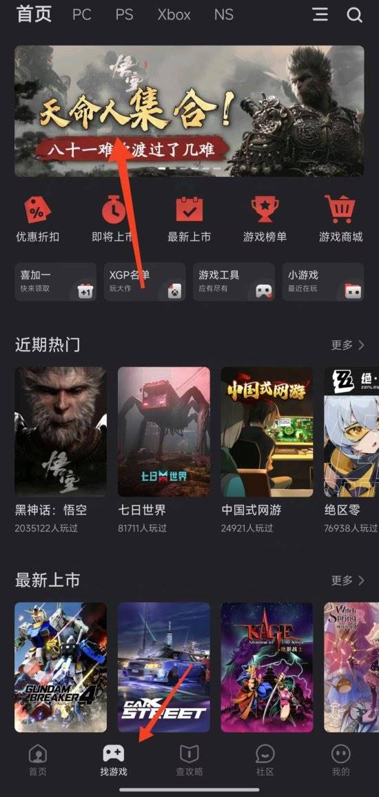 - 打开游民星空APP,进入底部导航栏【找游戏】或【查攻略】,点击最上方幻灯便可进入《黑神话:悟空》成就指南。