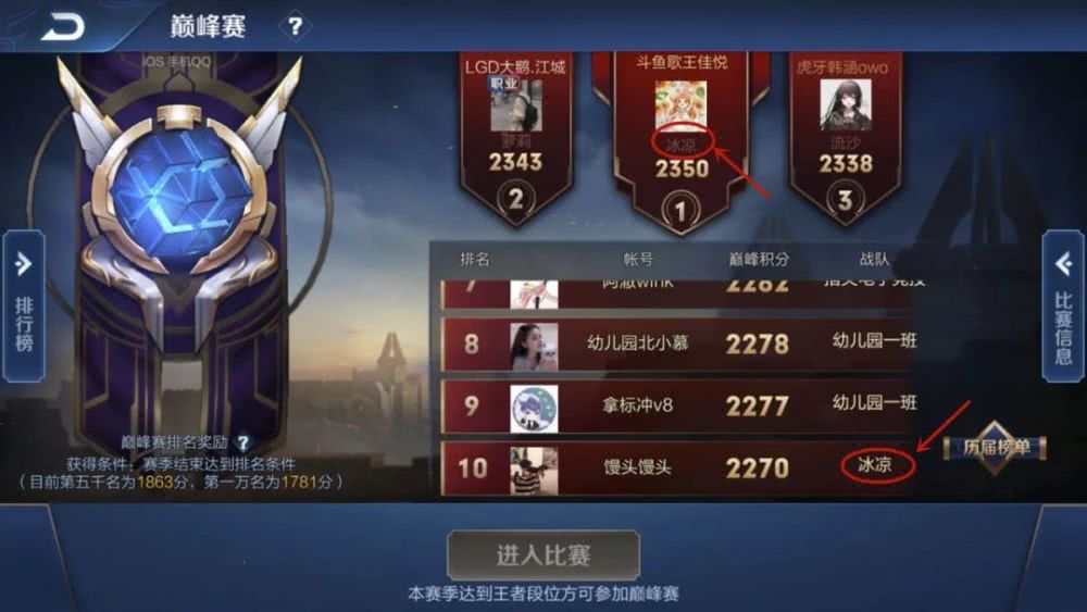 苹果Q区由于王者荣耀开启了转区的功能,所以也是在一定时间内用户激增,所以巅峰赛的排名也是每时每刻都在发生着变化,而最近苹果Q区的巅峰榜也是首次迎来巅峰榜前十被同一战队包揽,可以说是引起了非常大的轰动,这个战队就是“冰凉”战队,对于很多玩家来说,这个战队并不陌生,因为在前段时间的战队排名上,冰凉战队也是已经排到了苹果区全国百强战队里面,所以战队成员的实力也是非常的强劲。