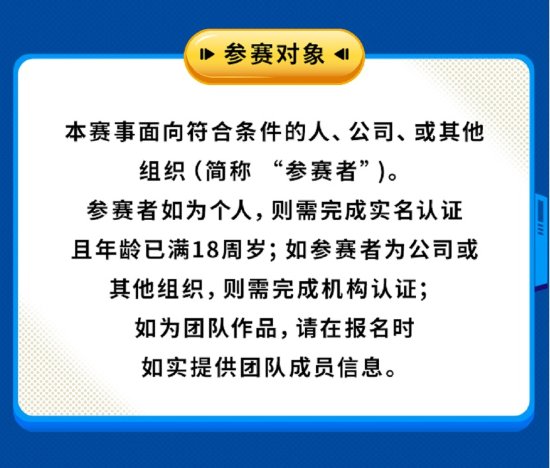 无论你是个人,团队,甚至是公司,均可以报名参加。无论你创意是用于端游亦或是手游,无论你创意适用于什么类型的游戏,都可以参加比赛,卡牌、动作、RPG、FPS,甚至是全新的还未出现的玩法都能在比赛中得到认可。