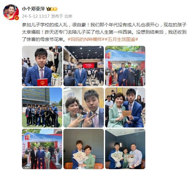 实际上,邓亚萍在自己的微博上经常提及儿子的成长变化。早在今年3月,儿子生日当天,邓亚萍就公开了一封写给18岁儿子的信,她在信中鼓励儿子勇敢地去探索世界。同时,她还分享了一家人欢庆生日的照片,照片中,18岁的林瀚铭与父母一起举杯畅饮红酒,共度快乐时光。